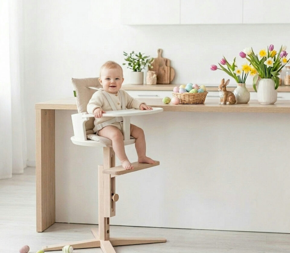 Edini otroški stol na trgu, ki se prilagaja od standardne višine jedilne mize (75 cm) vse do višine kuhinjskega pulta (98 cm).