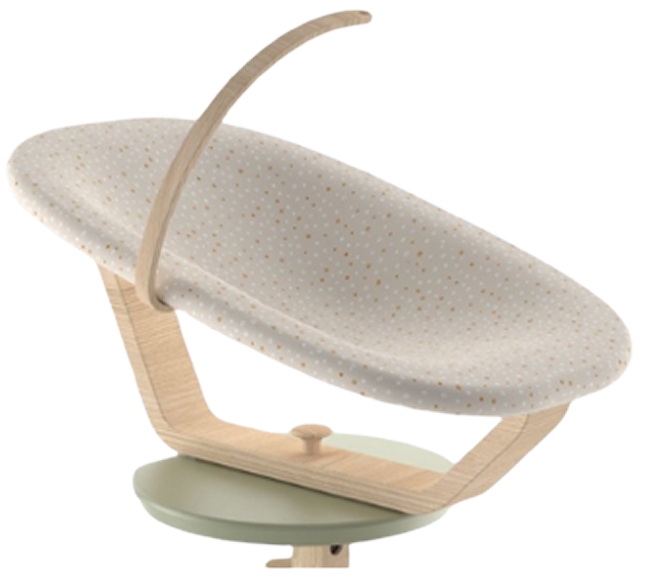 Vključuje mehko, ergonomsko otroško lupinico s tkaninskim prevlekom iz 100 % bombaža, ki se varno pritrdi na otroški stol, kar omogoča, da so tudi najmlajši dojenčki del družinskih trenutkov. Primerna je za uporabo od rojstva do 6 mesecev.