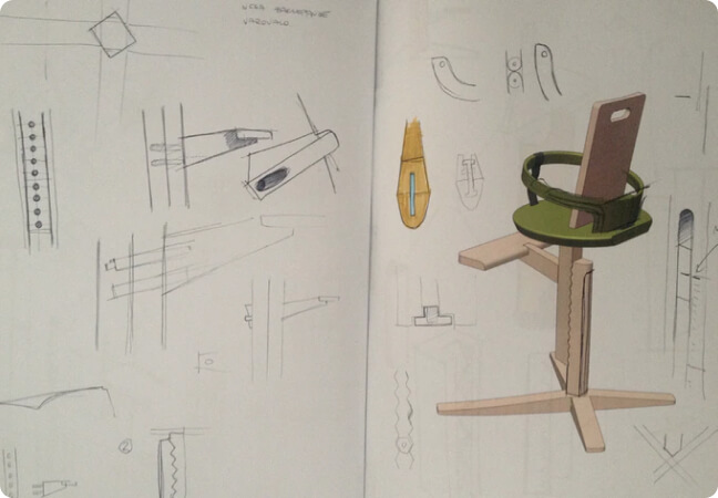 Z ženo Marušo sta iskala primeren otroški stol, ki bo varen, prilagodljiv in hkrati oblikovno dovršen. Ampak takšnega stola žal nista našla. Zato sta se odločila, da ga bosta razvila sama.
